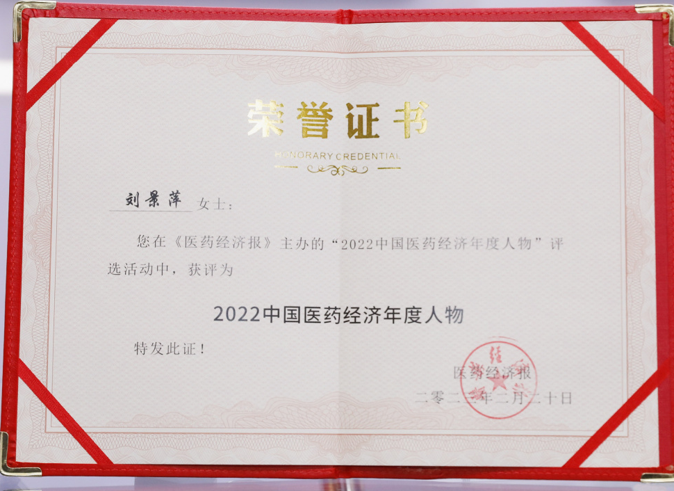 尊龙药业集团董事长刘景萍当选“2022中国医药经济年度人物”